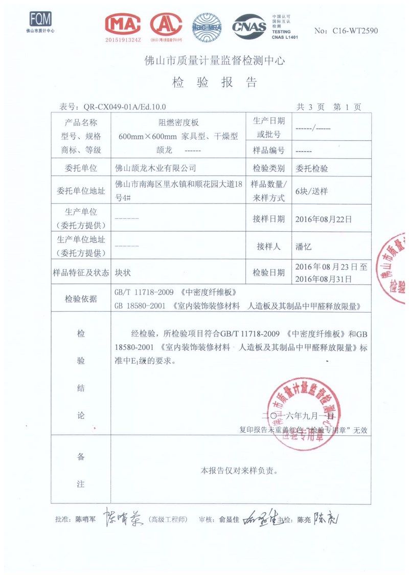 佛山頡龍木業有限公司,成立于2015年7月,集多種特殊板材的研發,生產,銷售于一體。主打產品包括有阻燃密度板,阻燃膠合板,A級阻燃板,防潮密度板等等。其標準有(國標B1-C,國標B1-B,美標ASTME84-A,英標BS476,歐標EN13501,澳標AS5637.1)廣泛應用于建筑裝飾、酒店裝修、家具制造、隔斷墻和地板等行業。產品的穩定性,優質的服務得到業內的認可。 佛山頡龍木業有限公司,自創立以來,以“誠信為本,優質產品,共贏互利”為發展宗旨,致力于打造優質功能板材。